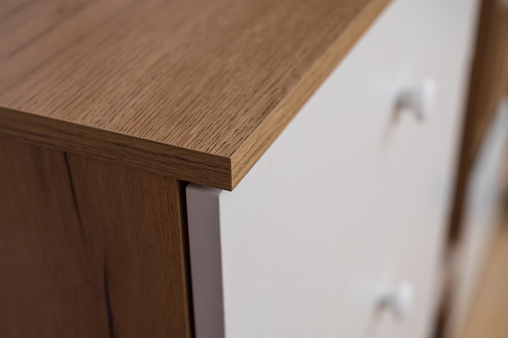 Комод из коллекции «Лойс» создан с учетом вкуса и потребностей Вашего ребенка! Личные вещи и белье поместятся в 5-ти вместительных ящиках на шариковых направляющих. Открытая ниша имеет просторную штангу, на которой ребенок разместит школьную форму и деликатную одежду на плечиках.