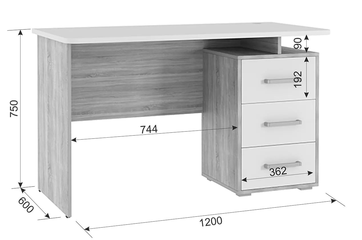 Состоит из тумбы с 3-мя выдвижными ящиками.
