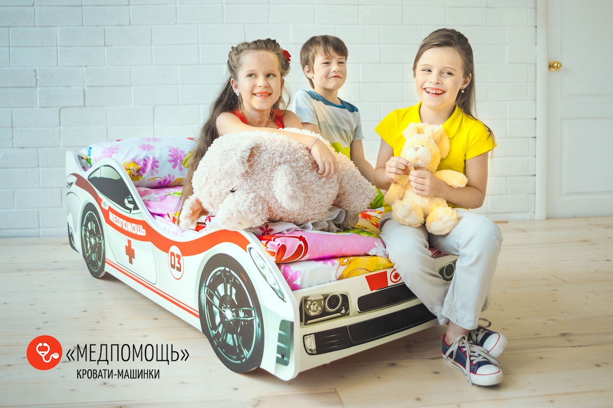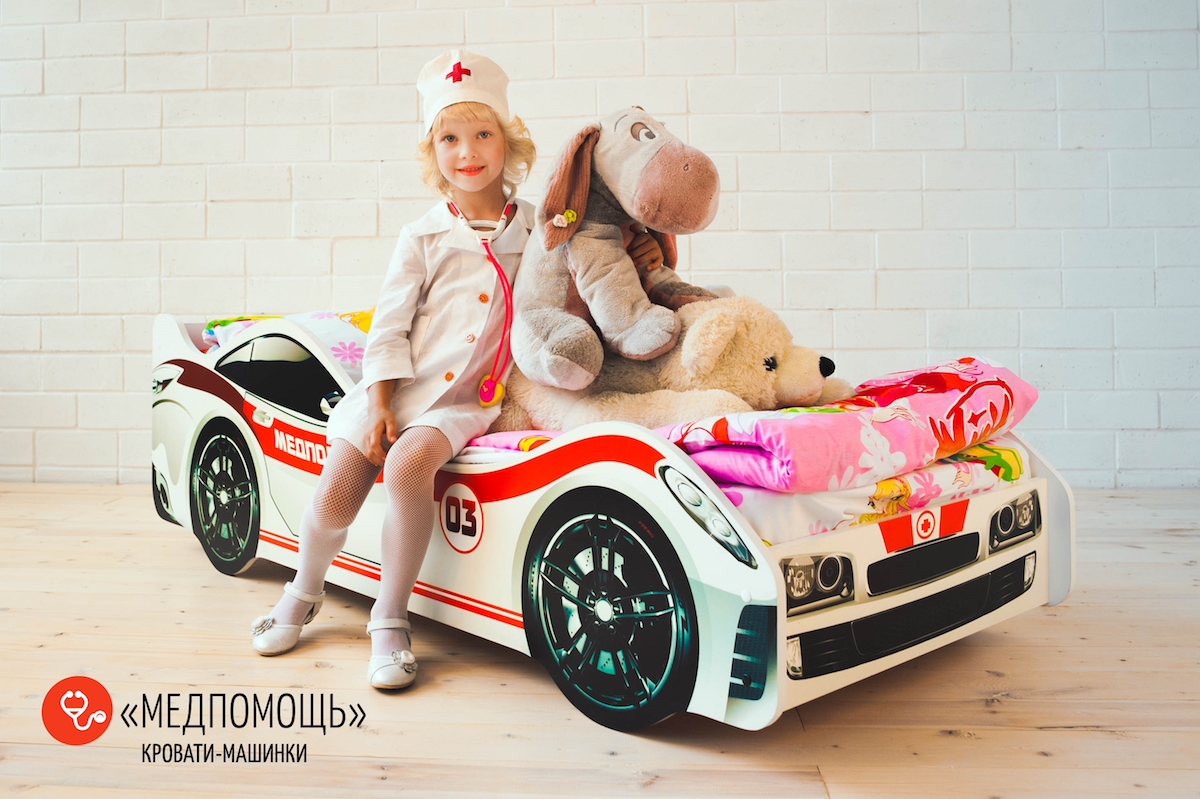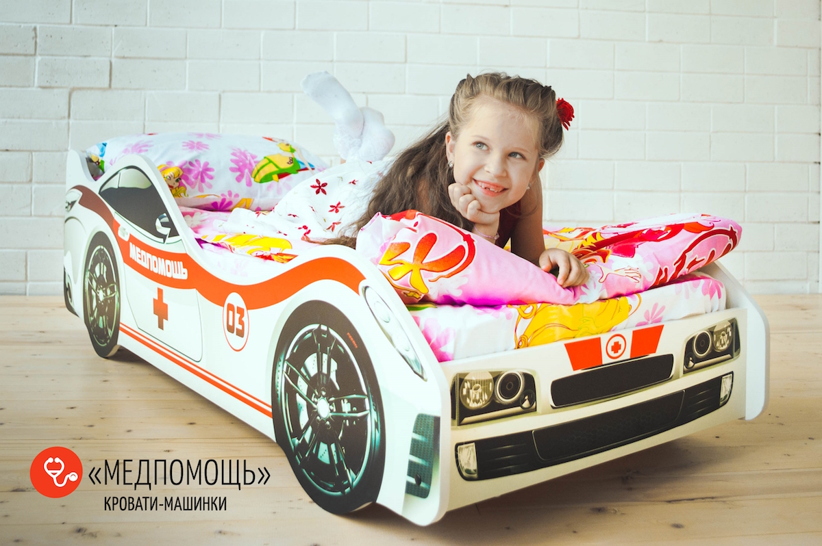 МЕДПОМОЩЬ – это предназначенная для мальчиков и девочек от 2-х лет кровать-машинка, на которой можно организовать увлекательные игры. Дети превратили спальное место в батут? Не нужно беспокоиться: наши кроватки не ломаются! Основание изготовлено из прочных деревянных лат, которым не страшна нагрузка до 200 кг, а прочные борта, оклеенные кромкой ПВХ, не дадут ребенку ушибиться.