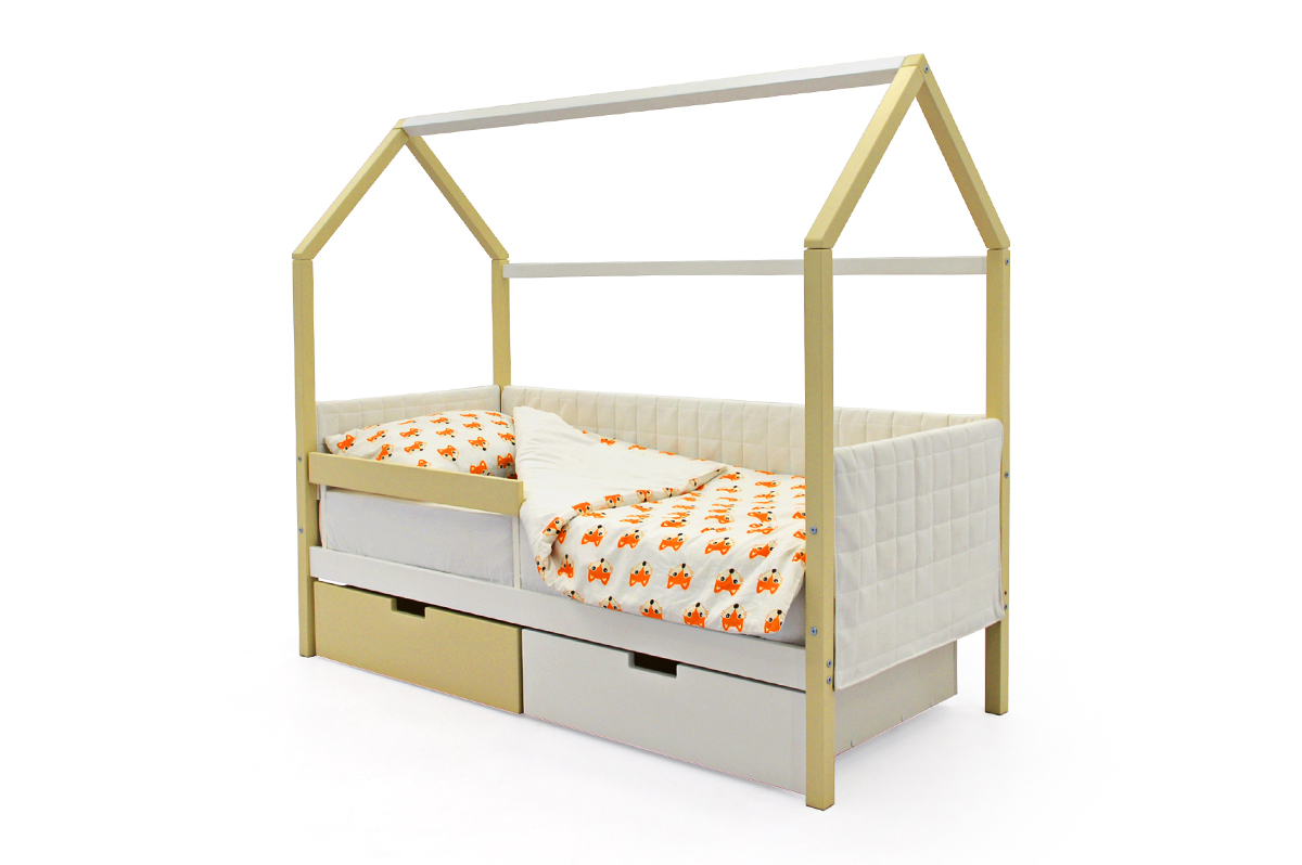 Детская мягкая кровать-домик Бельмарко “Svogen бежево-белый” станет любимым местом для сна и игр мальчика или девочки от 2 до 10-12 лет.