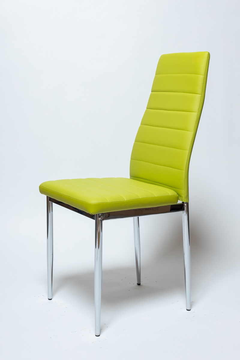 Каркас стула изготовлен из хромированного металла. Сиденье и спинка обиты кожзаменителем с текстурой крокодиловой кожи. Доступен большой ассортимент цветов.
