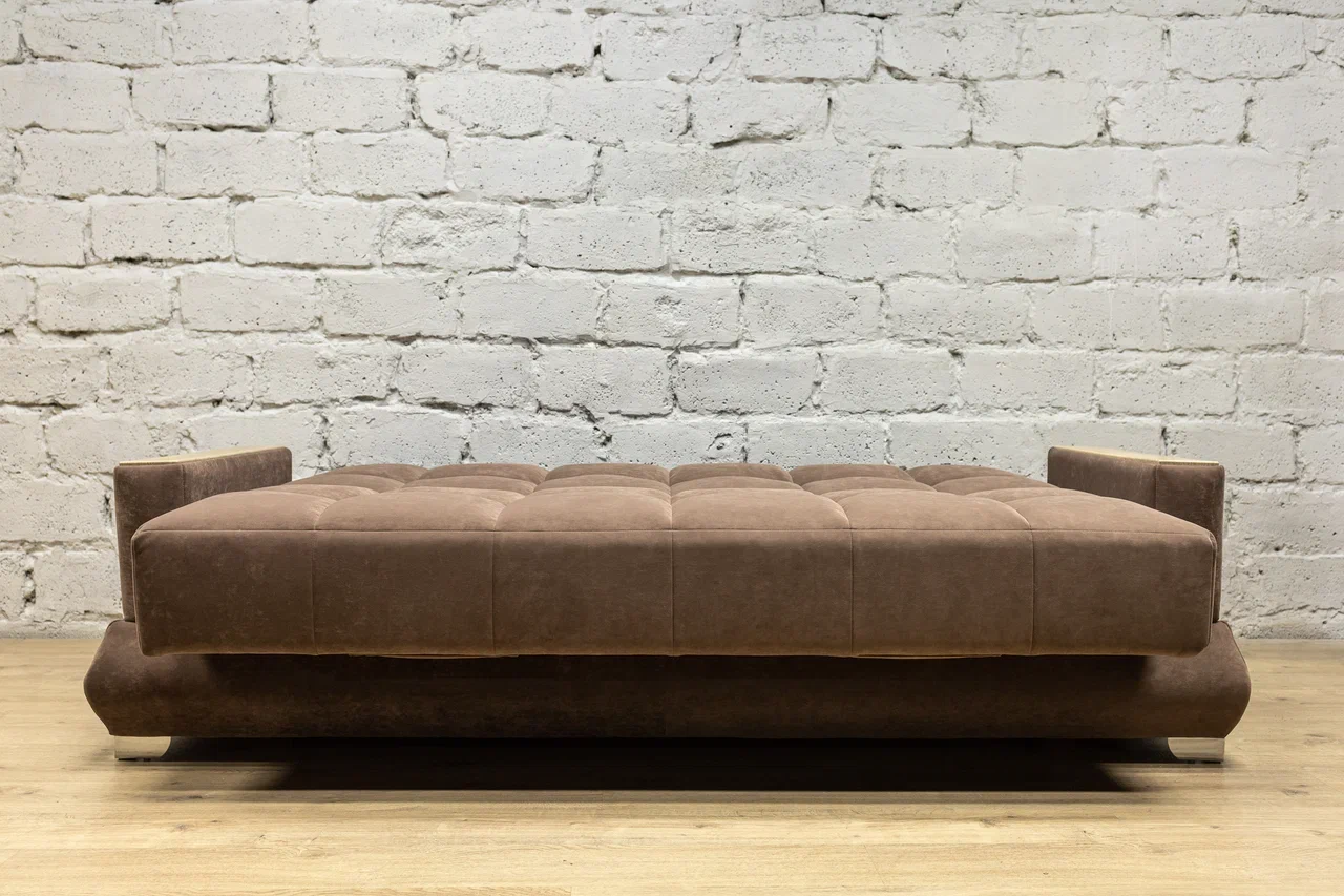 Выпуклые формы спинки и посадочного места создают необыкновенную мягкость модели. В наполнении - холлофайбер. Он был создан на основе структуры синтепона, но заметно отличается от предшественника. У синтепона волокна прямые, у холлофайбера — витые. Отсюда и главное достоинство материала — способность легко изменять и восстанавливать форму. На диване комфортно не только сидеть, но и спать. Выпуклые формы под тяжестью тела с легкостью превращаются в абсолютно ровное спальное место.