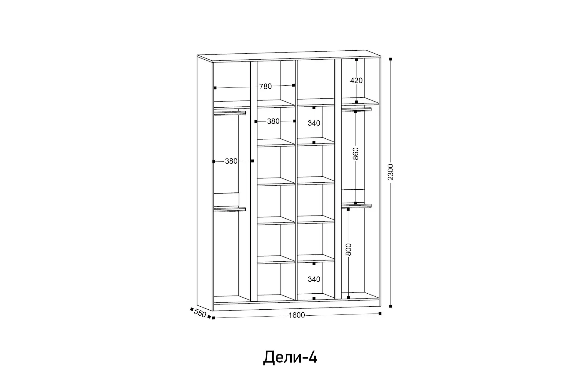 Магазин мебели «100Диванов» предлагает купить Шкаф 4-х створчатый Дели в Надыме по выгодным ценам от производителя с доставкой.