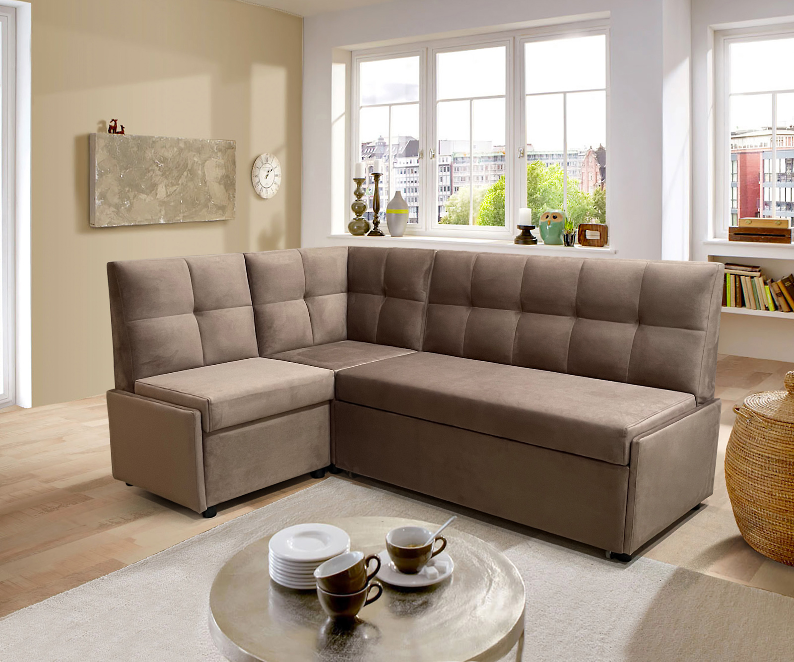 Описание: Модульная мебель предназначена для кухонных помещений. Стандартная комплектация является универсальной и может собираться в домашних условиях, на любую сторону, без применения инструментов. Ящик для хранения вещей. Раскладывается в спальное место, где обивка выполнена из основной ткани. Полка ЛДСП.