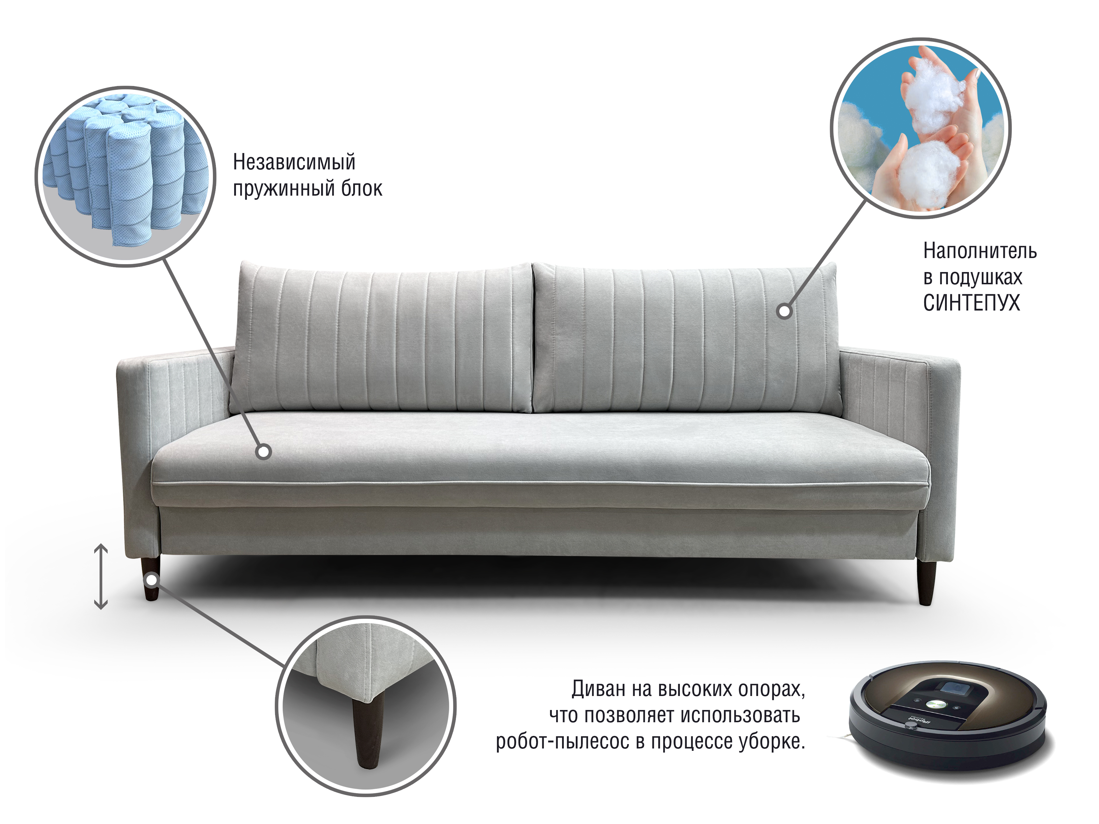 Мы поможем с подбором, подробно расскажем об интересующих вас моделях, покажем изделие и образцы материалов вживую, наглядно продемонстрируем работу мебельных механизмов, качество сборки, фактуру ткани.