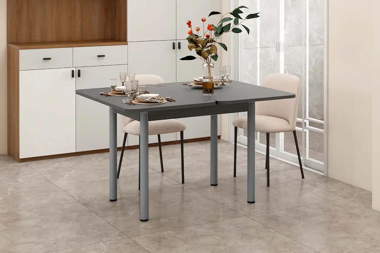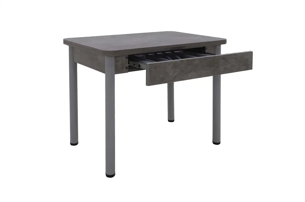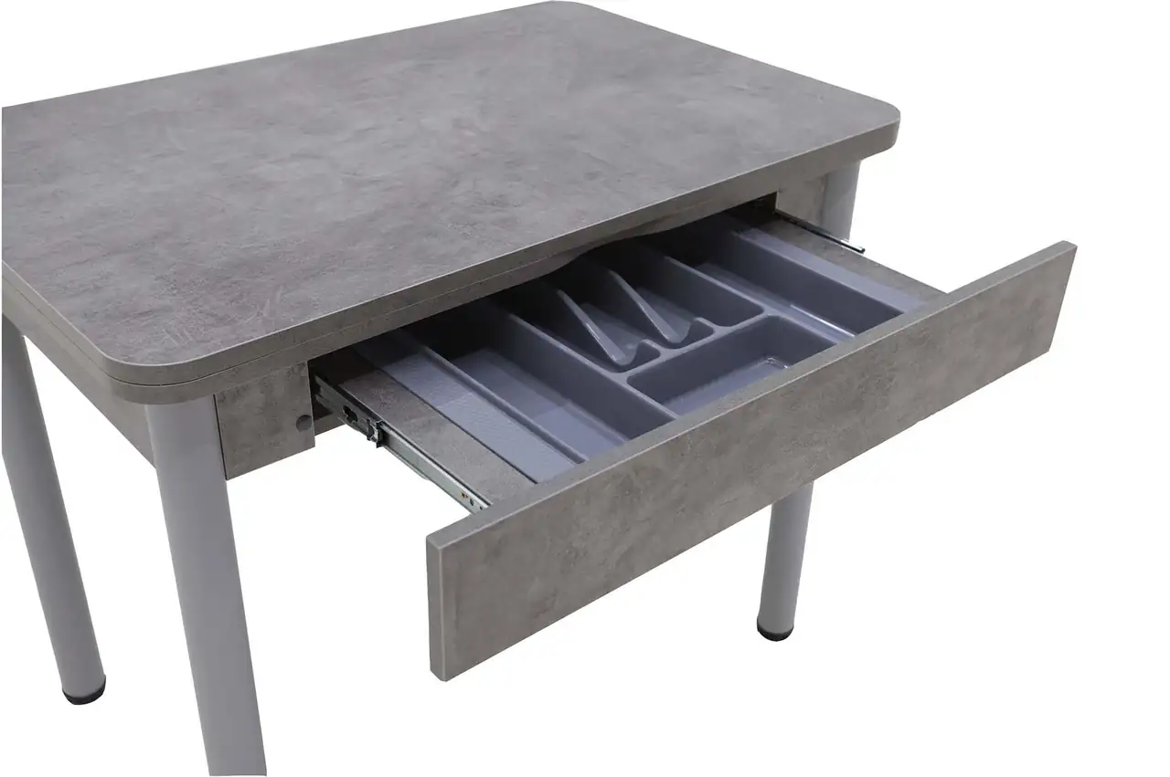 Стол-трансформер обладает регулируемыми опорами. Встроенный лоток для приборов в ящике позволит вам удобно хранить все необходимые кухонные принадлежности.