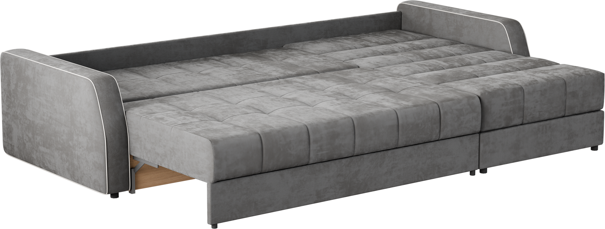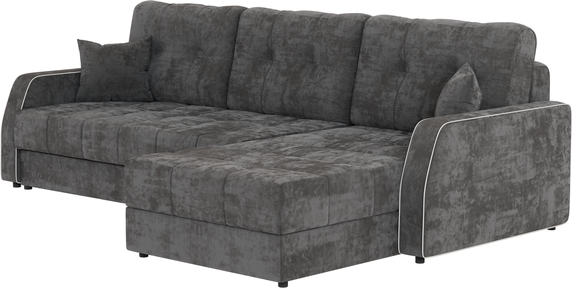 Особый шарм придает специальная простежка чехла, которая к тому же не позволяет дивану утратить форму в процессе эксплуатации. Комфортные ощущения в минуты расслабления гарантирует независимый пружинный блок в основании. ЖЕНЕВА легко преображается в просторную кровать с полноценным спальным местом, благодаря механизму "еврокнижка". Два бельевых ламинированных ящика в диване и оттоманке обеспечивают дополнительную систему хранения.