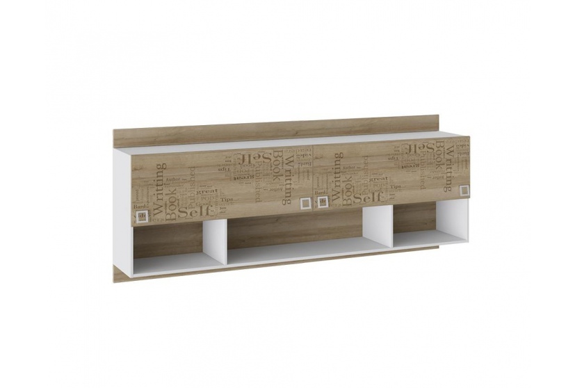 Настенный шкаф "Оксфорд" имеет нишу с перегородками и два закрытых отделения с откидными дверцами. Шкаф может использоваться в комплексе с вертикальными шкафами и располагаться над кроватью "Оксфорд", либо как отдельный навесной элемент обстановки для хранения книг, учебным принадлежнойстей, декора.