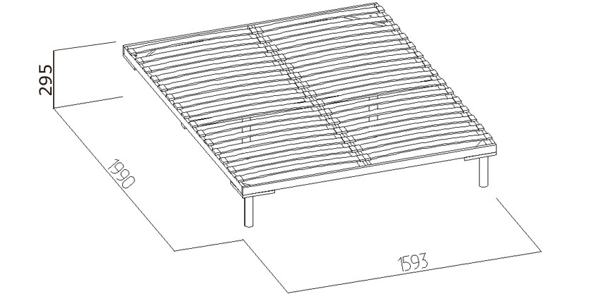 Стационарное основание с гибкими ламелями из фанеры. Прочный и надежный деревянный каркас. Такое основание экологично и выдерживает даже большую нагрузку, чем основание на металлическом каркасе. Сравните: нагрузка на основание в исполнении Дерево - 440 кг с учетом веса матраса, основание в исполнении Металл - 300 кг с учетом веса матраса.